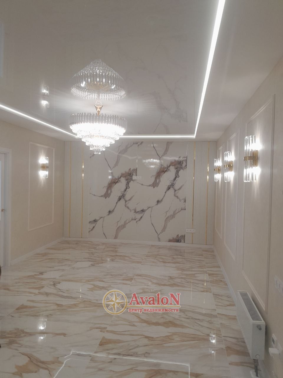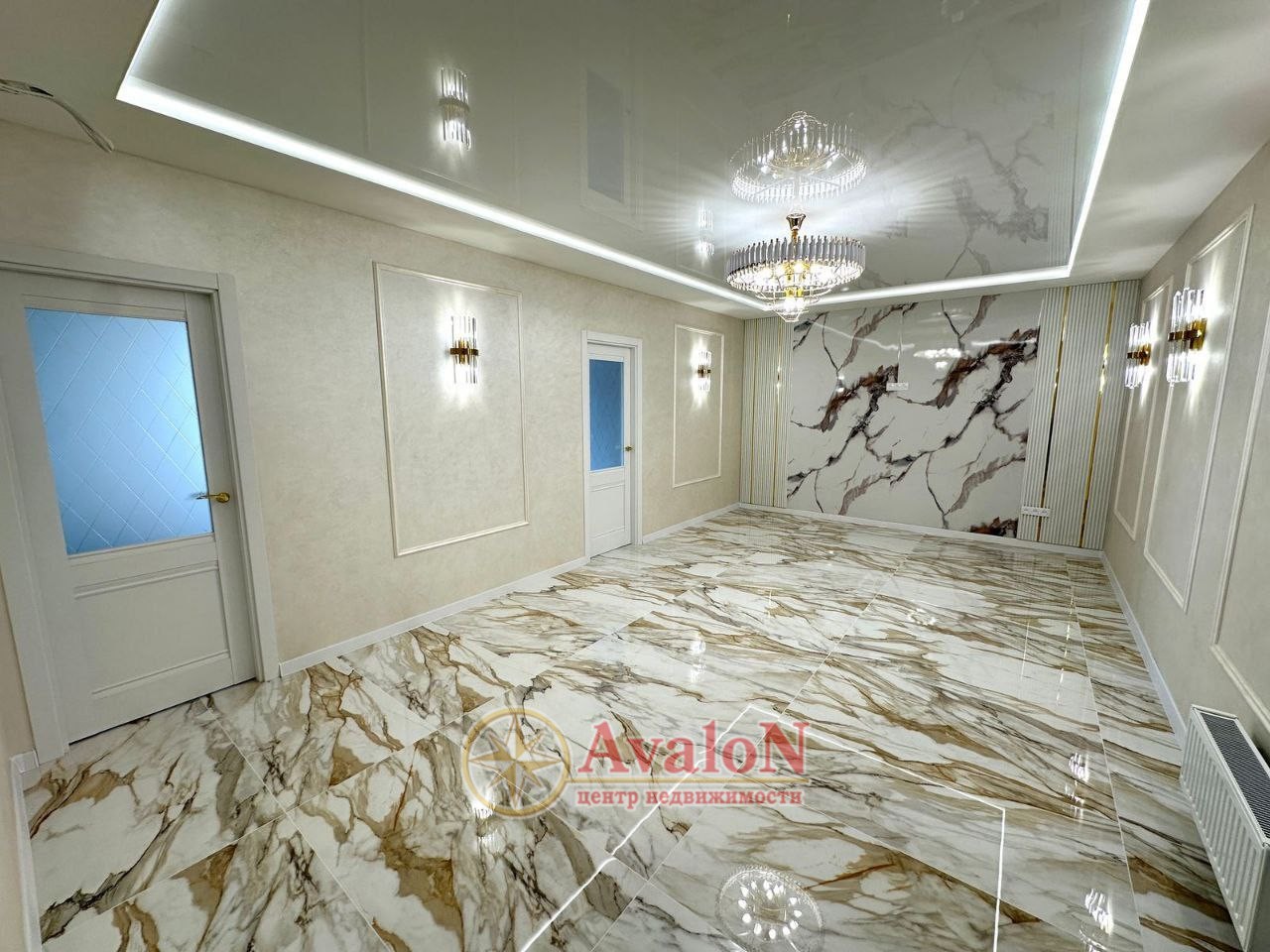 В продаже 2-комнатная квартира площадью 70 м² в современном жилом комплексе бизнес-класса. Интерьер выполнен в изысканном стиле модерн: дорогой евроремонт, глянцевые потолки, богатые хрустальные люстры. Стены и пол облицованы крупноформатным керамогранитом под мрамор – сочетание элегантности и практичности. Панорамные окна заливают комнаты естественным светом и создают ощущение простора. Мягкое изголовье кровати с золотыми вставками дополняют атмосферу настоящего жилья класса «люкс». Это уникальное предложение – продажа квартиры класса «люкс» в ЖК бизнес-класса. Звоните прямо сейчас, чтобы договориться о просмотре и стать обладателем вашего идеального жилья!