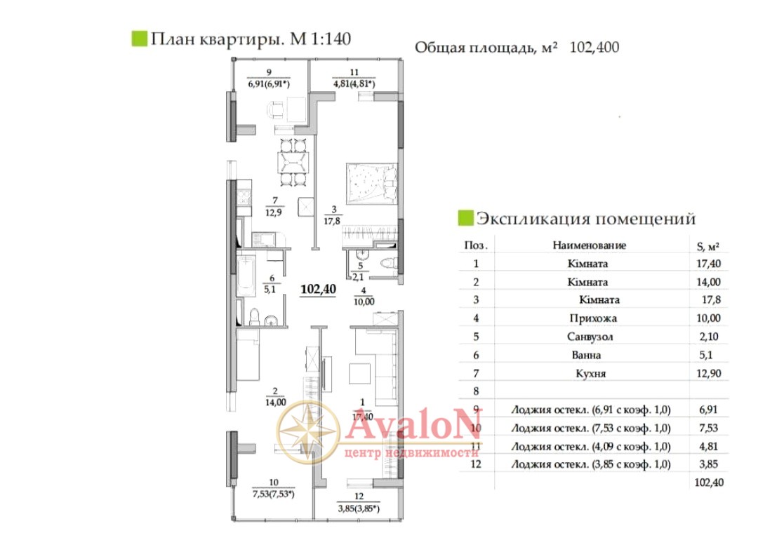 Продается просторная 3-х комнатная в сданном современном доме с собственным закрытым двором и инфраструктурой. - 102,4 м² продуманного пространства: кухня-гостиная и 3 спальни - идеально для семьи или тех, кто ценит комфорт. - 4 большие остекленные лоджии с панорамным видом - любуйтесь городом в любое время года. – 17 этаж – максимум света и впечатляющий пейзаж. -Дом с хорошим благоустройством, детскими площадками и паркоместами. – состояние от застройщика – сделайте интерьер под свой стиль и вкус. Локация, планировка и вид – это то, что делает эту квартиру особенной!