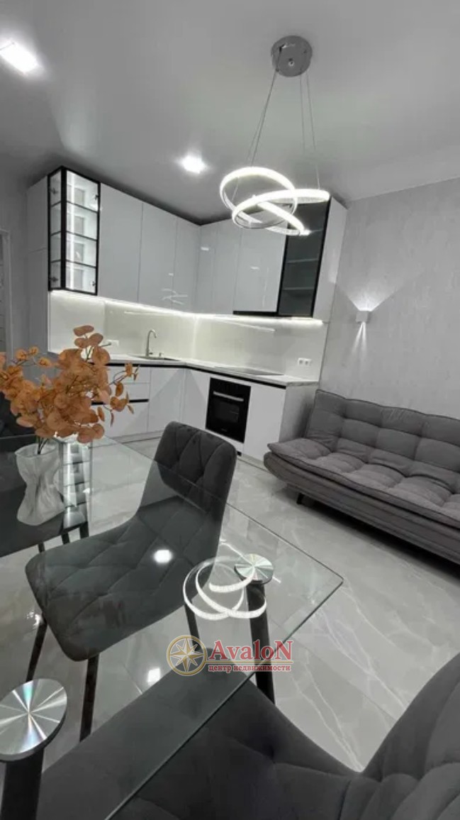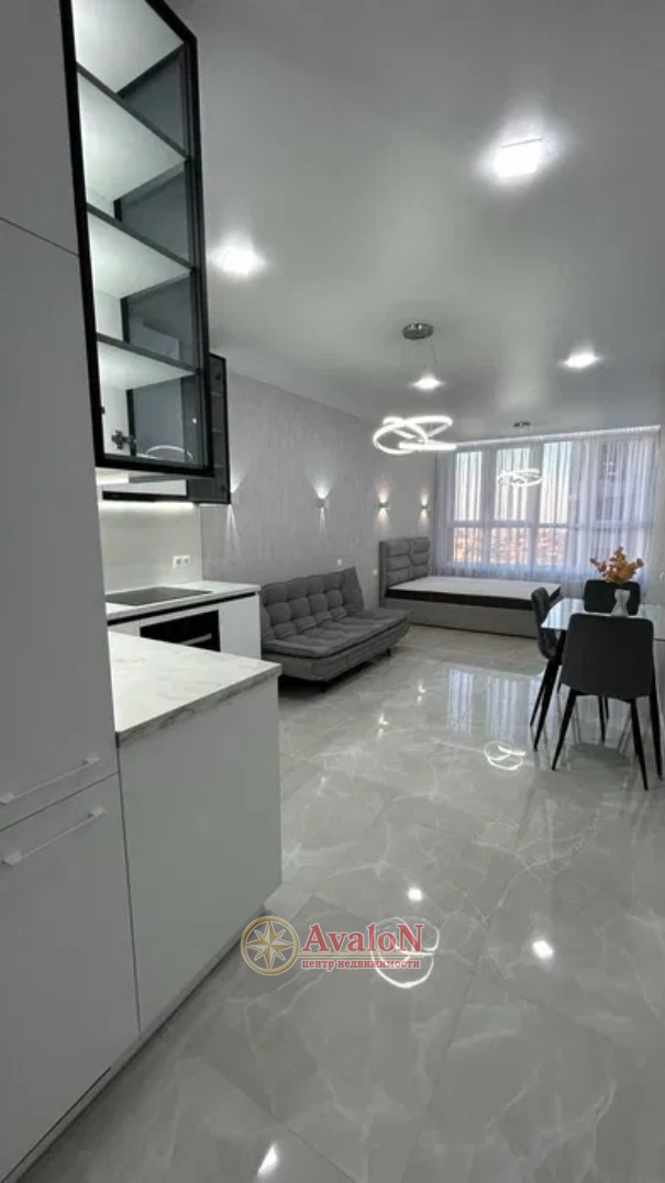 ЖК Модерн. От надежного застройщика Стикон. В одной из лучшей локации этого города, Большой Фонтан. 5 станция. Квартира с дорогим ремонтом. Встроенная кухня, есть варочная поверхность, духовка, вытяжка, холодильник. Диван раскладывается. Двухспальная кровать с подъемным механизмом. Есть гардеробная. Санузел современно облицован, инсталяция, тумба, зеркало с подсветкой, ванная. Большое окно. Вид на море. Квартира очень теплая. Парадная отапливается. Везде камеры. Три лифта. Закрытая территория. Подземный паркинг. Охрана. Парк Победы и Аркадия - в шаговой доступности. Рядом множество учебных заведений.