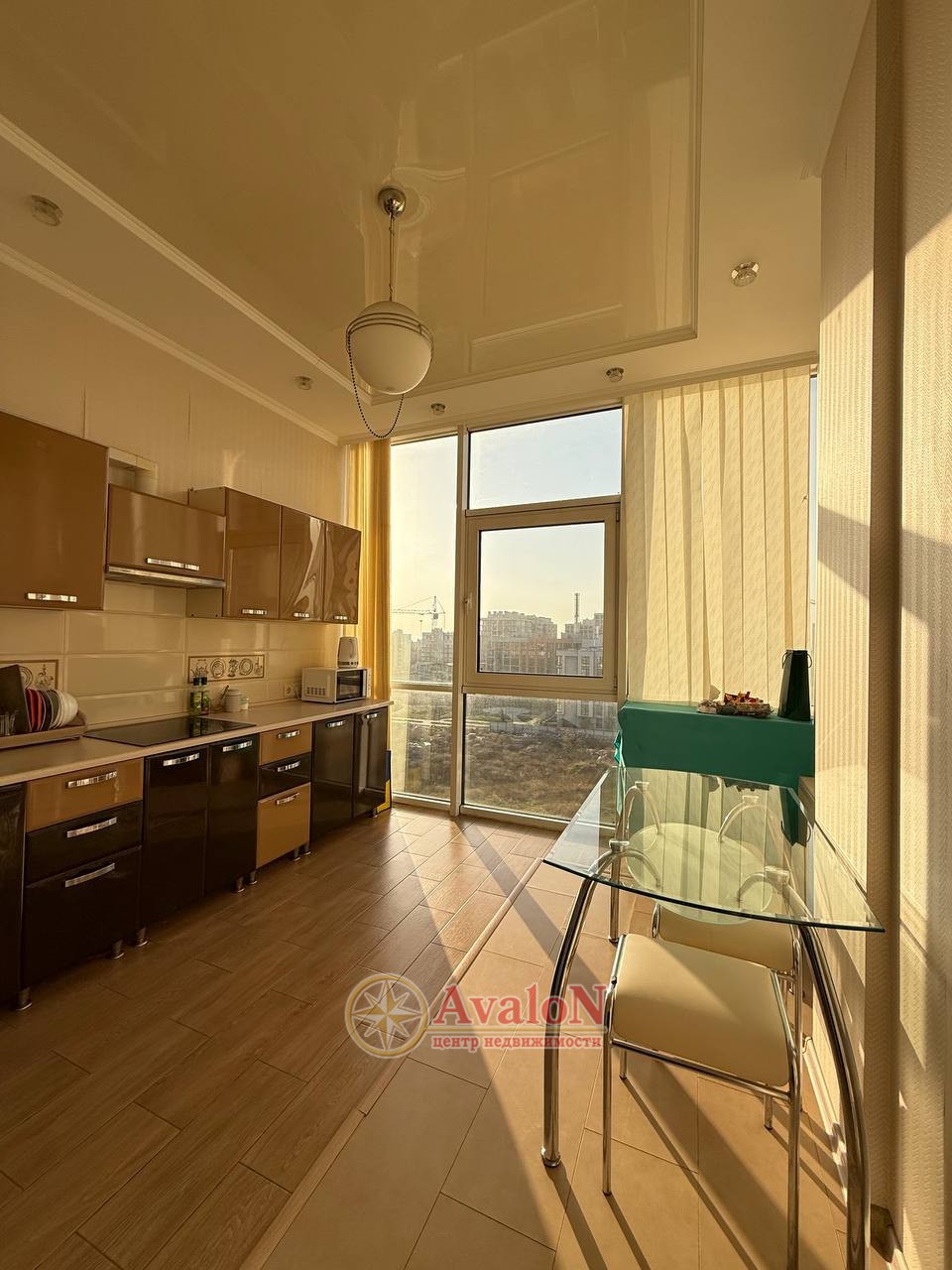 Простора, світла квартира з панорамним осклінням.