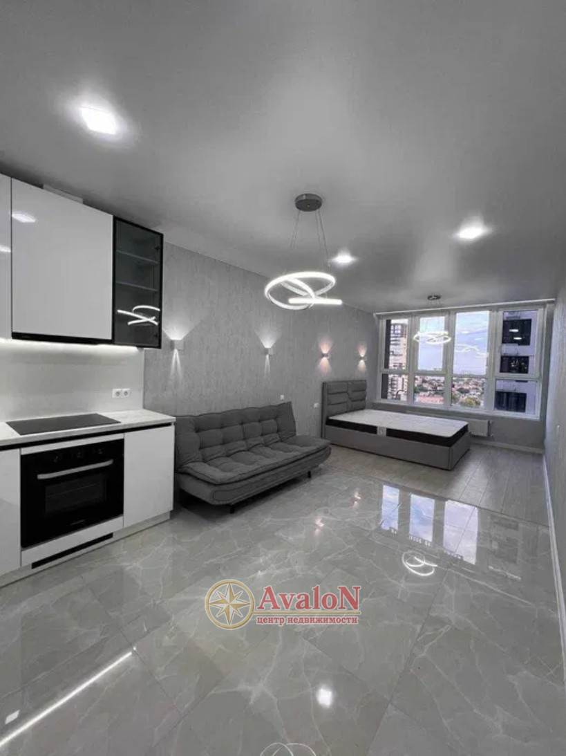 ЖК Модерн. От надежного застройщика Стикон. В одной из лучшей локации этого города, Большой Фонтан. 5 станция. Квартира с дорогим ремонтом. Встроенная кухня, есть варочная поверхность, духовка, вытяжка, холодильник. Диван раскладывается. Двухспальная кровать с подъемным механизмом. Есть гардеробная. Санузел современно облицован, инсталяция, тумба, зеркало с подсветкой, ванная. Большое окно. Вид на море. Квартира очень теплая. Парадная отапливается. Везде камеры. Три лифта. Закрытая территория. Подземный паркинг. Охрана. Парк Победы и Аркадия - в шаговой доступности. Рядом множество учебных заведений.